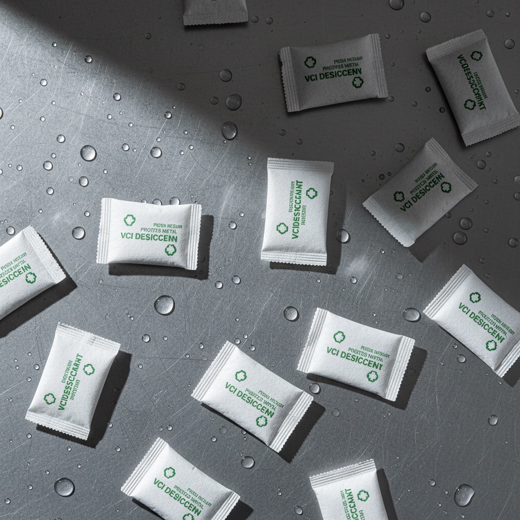 Bolsitas con doble acción — absorben humedad y emiten VCI. Ideales para contenedores marítimos de larga travesía.